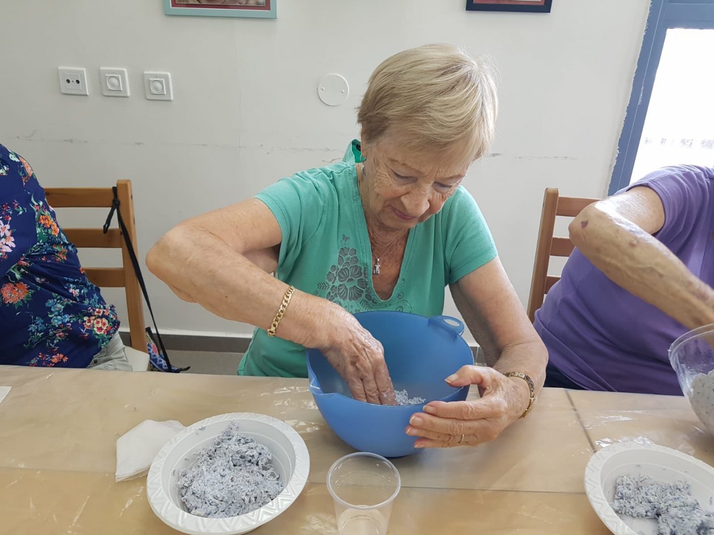 ביום חמישי האחרון הגיעה אלינו אירית בליטי ועשתה איתנו עבודות בעיסת נייר. החברים עבדו במרץ, "התלכלכו" ויצרו יצירות נפלאות.
