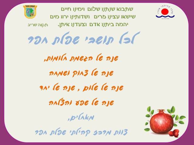 לכל תושבי שפלת חפר- שנה טובה מצוות השלוחה