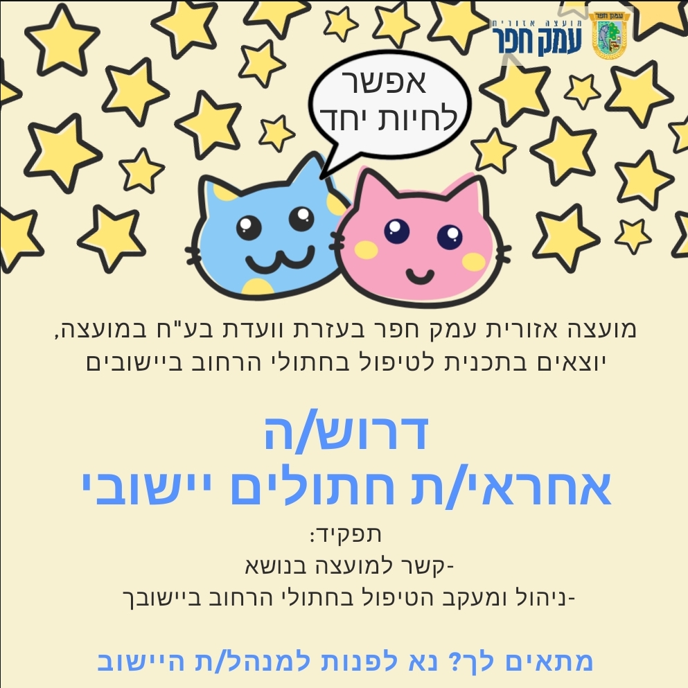 וועדת בע"ח יוצאת בתכנית לטיפול בחתולי הרחוב ומחפשת אחראי/ת חתולים יישובי.