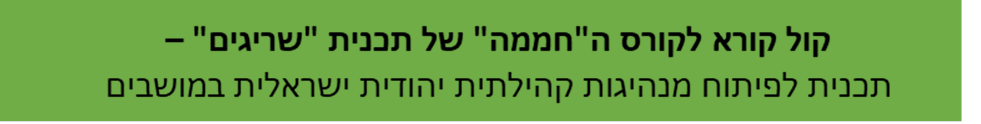 תכנית "שריגים" גאה לפתוח זו השנה השנייה את קורס "החממה" - תכנית לפיתוח מנהיגות קהילתית ברוח תרבות יהודית ישראלית, פתוחה ושוויונית, הפועלת בערוצים מגוונים בראייה מושבית.