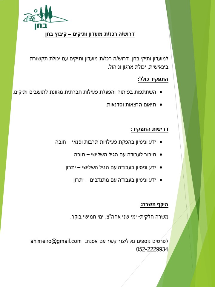 מצורפת מודעת דרושים לרכז מועדון ותיקים בבחן