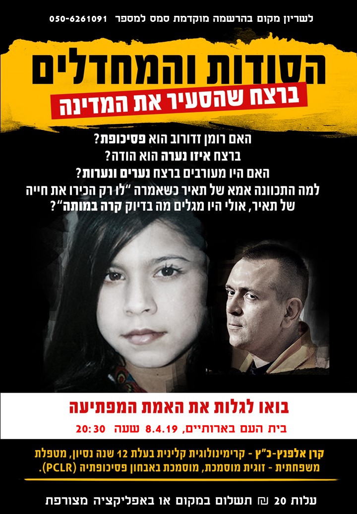 ועדת תרבות עולש-בארותיים מזמינה אתכם להרצאה מרתקת של קרן, קרימינולוגית קלינית תושבת יד חנה,