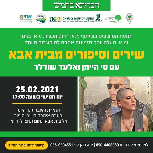 תנועת המושבים בשיתוף מ.א. דרום השרון, מ.א ברנר ומ.א. מעלה יוסף מזמינות אתכם למופע זום מיוחד