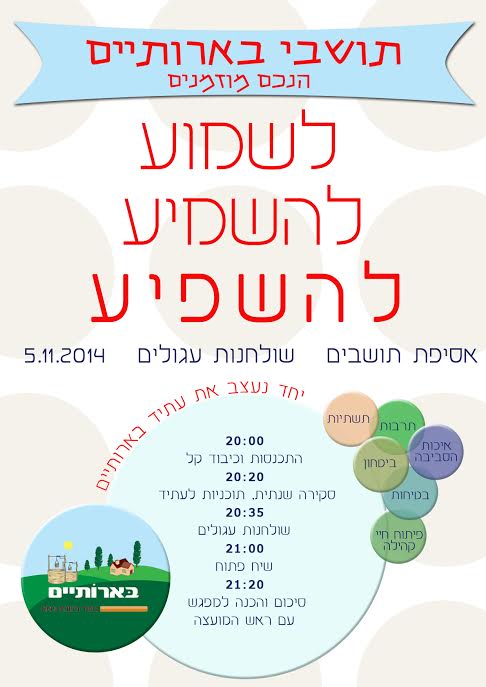 ועד המושב מתכבד להזמין אתכם ביום רביעי ה-5/11 בשעה 20:00 לאסיפת תושבים.