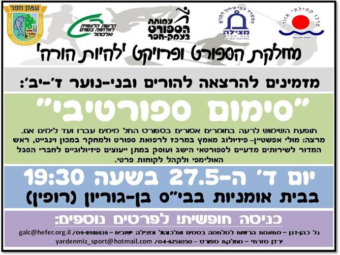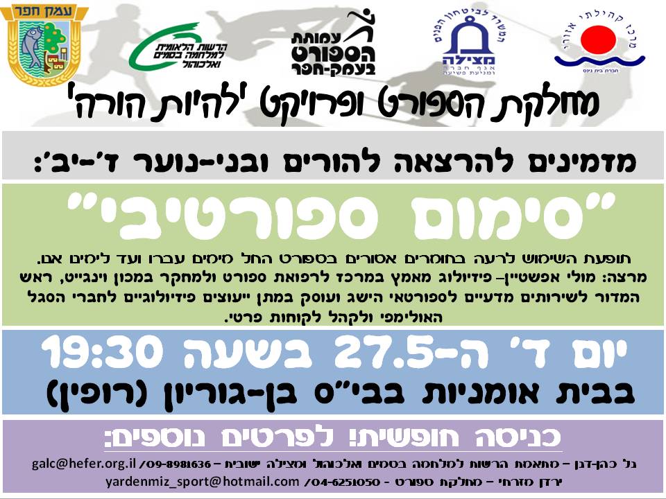 מחלקת הספורט בעמק חפר ופרויקט 'להיות הורה' מזמינים הורים ובני נוער בכיתות ז'-יב'